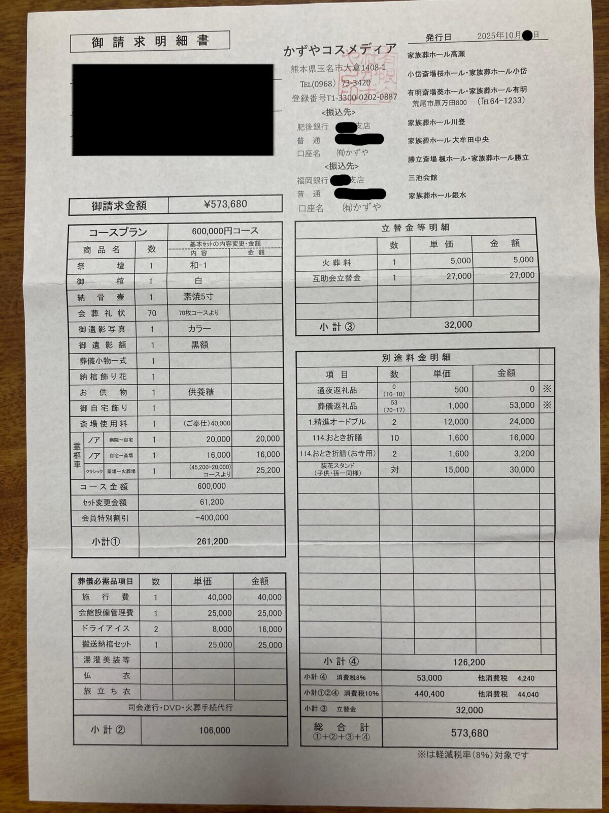 かずやコスメディアの家族葬プランには、祭壇や生花、式場使用料などが含まれており、安心して利用できます。